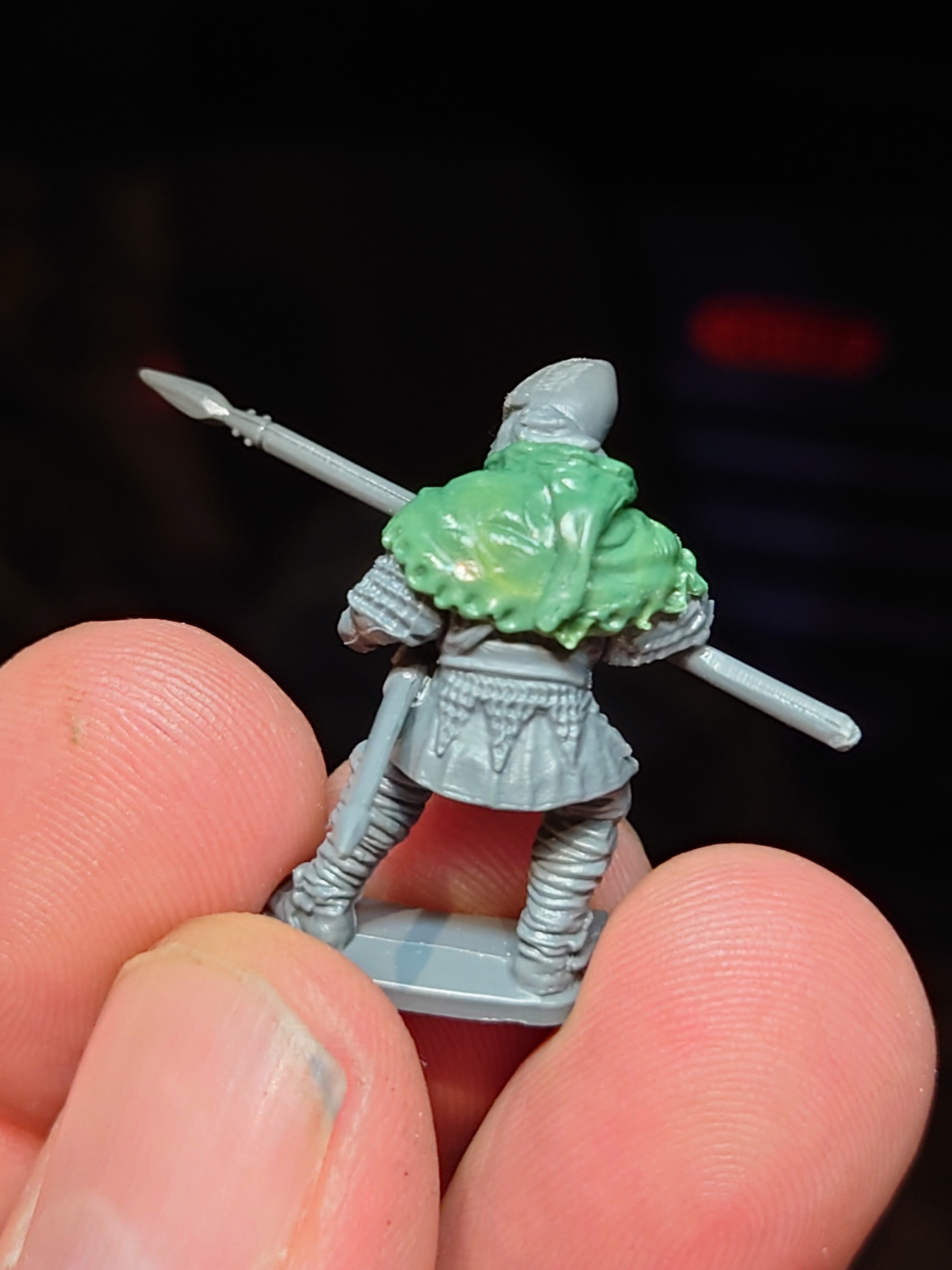 Gripping Beast Saxon gets an Elven twist. All of my spear arms basically come from this plastic set. Again, a long hood gives him a more Elven feel.